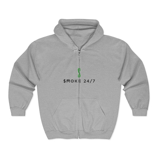 Rose Graphic Zip Hoodie — "Smoke 24/7" Gothic Rose Streetwear
