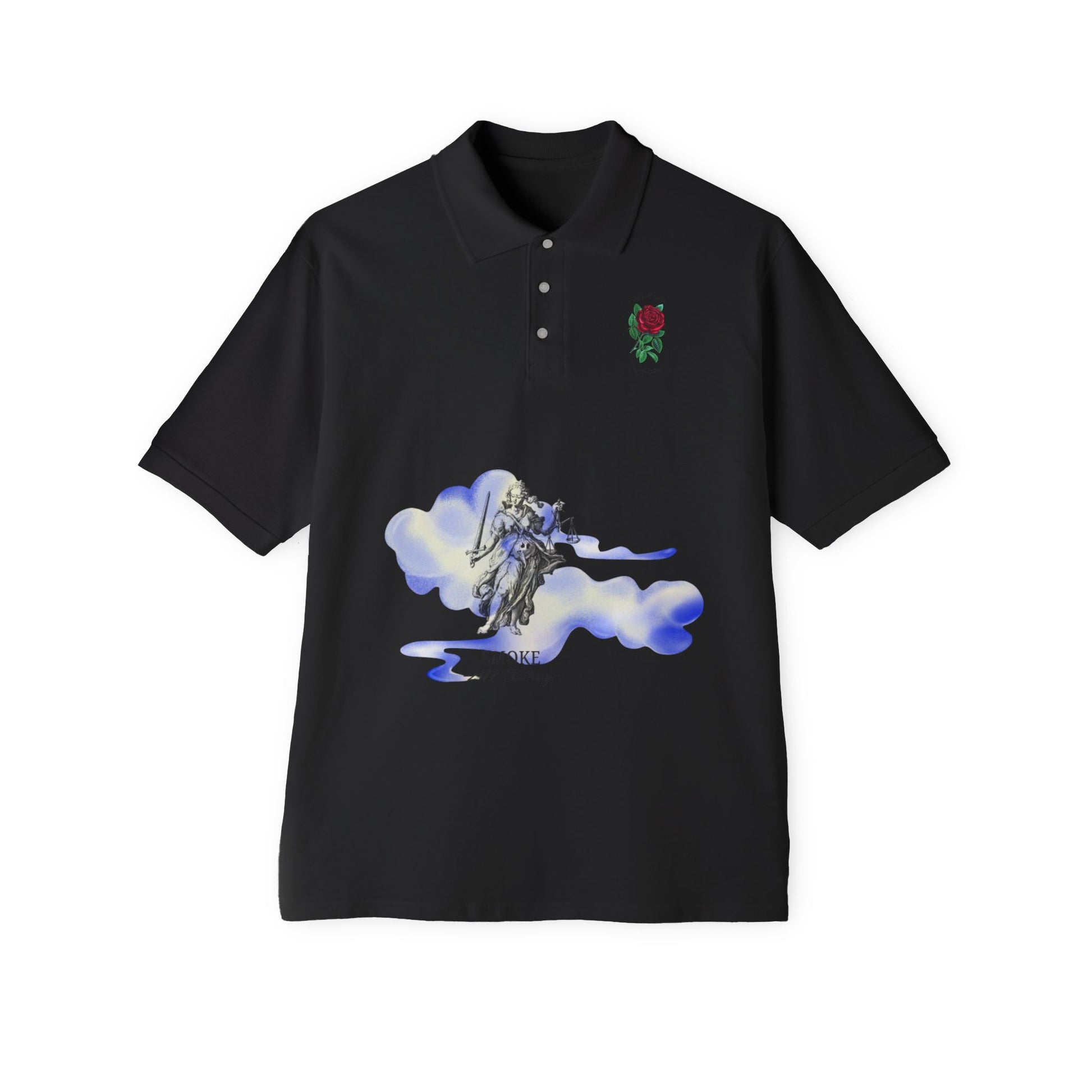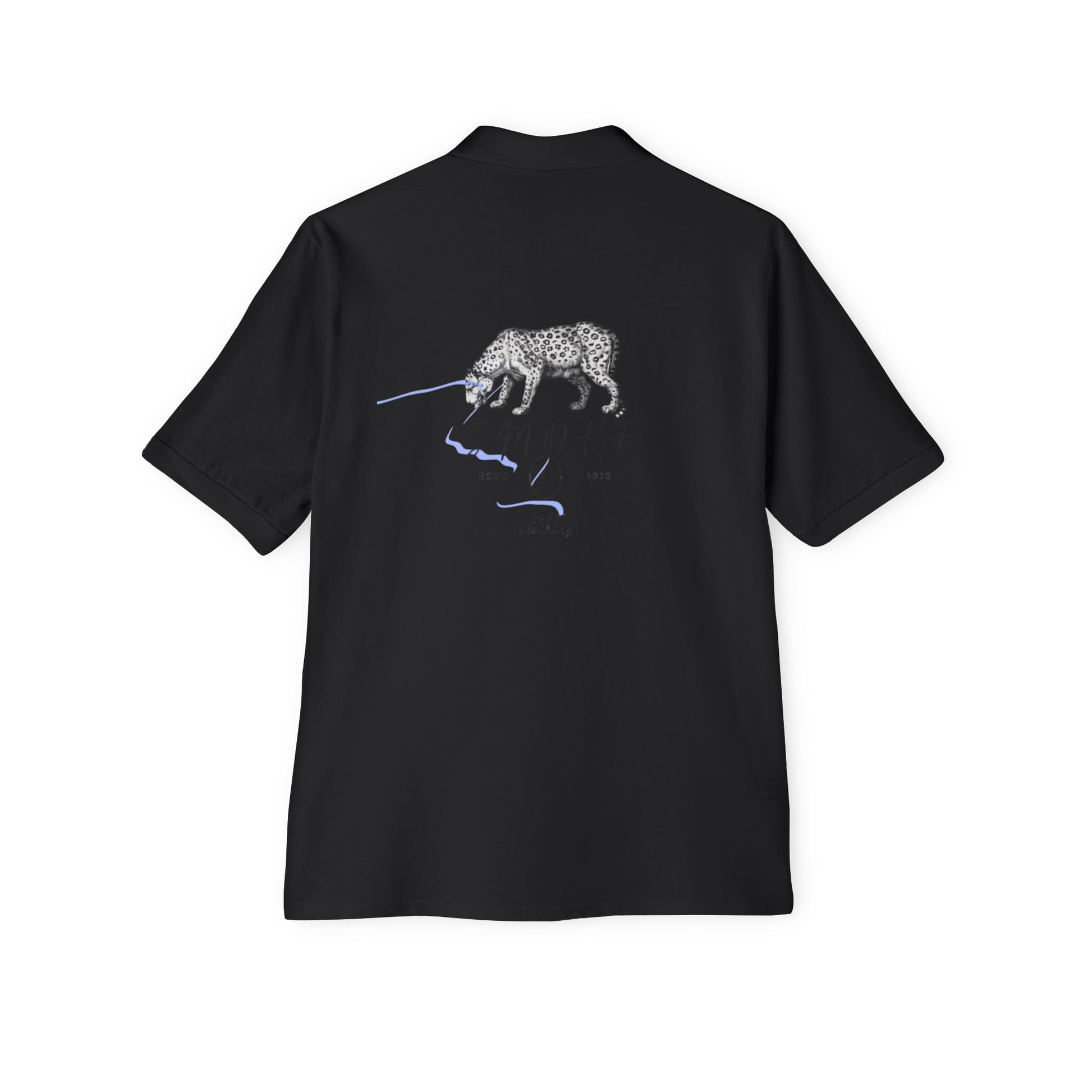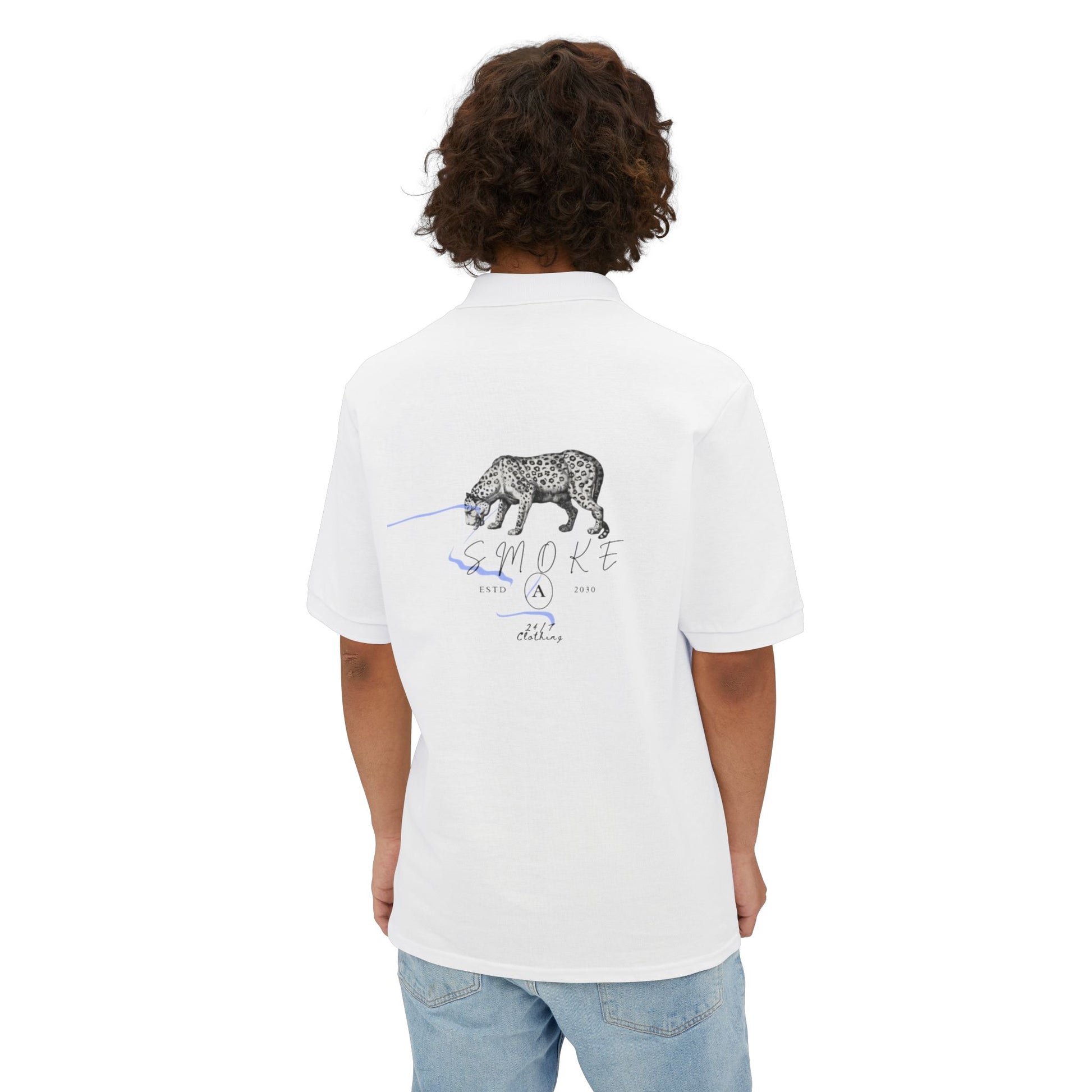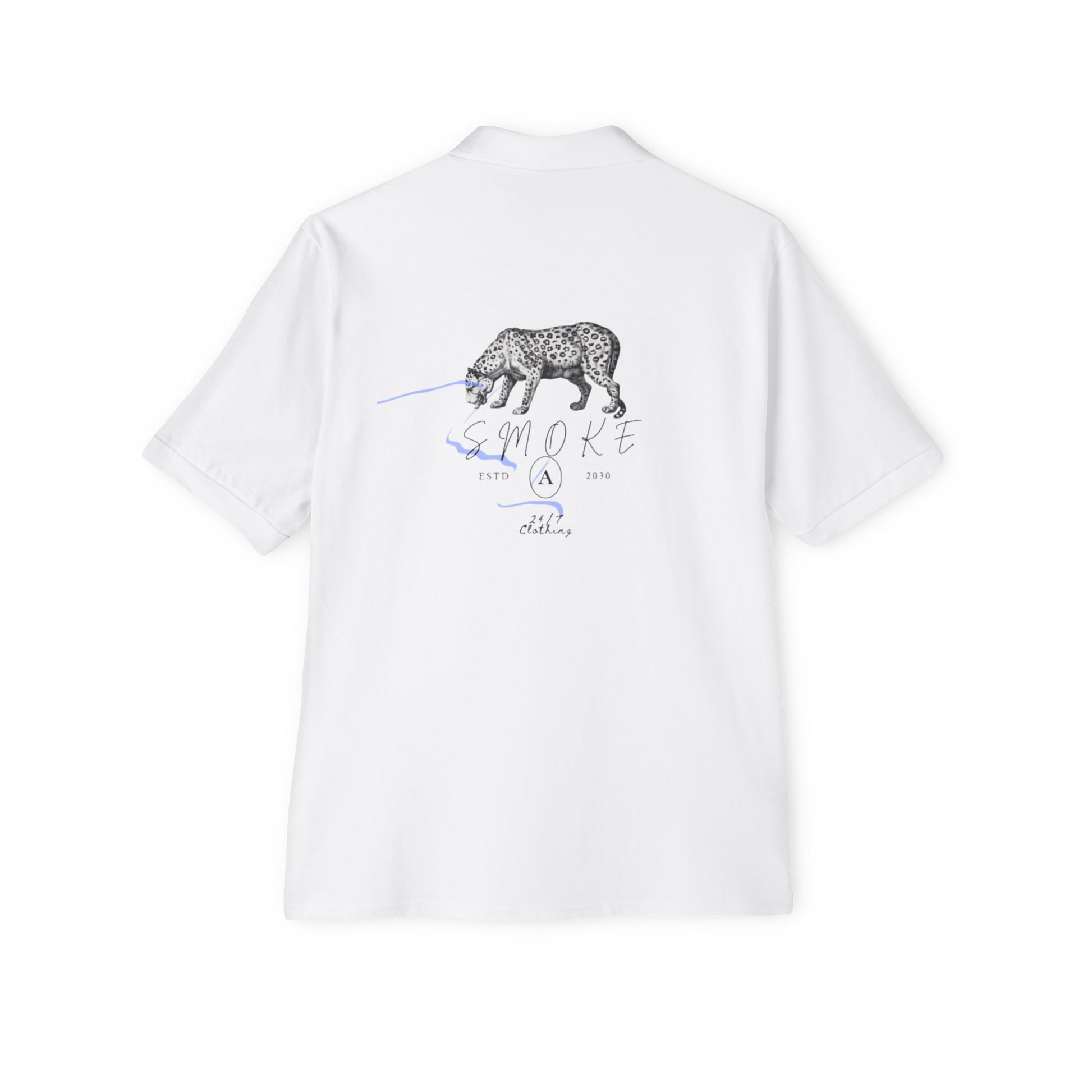 Artistic Men's Piqué Polo with Rose and Leopard Design, Stylish Casual Wear, Summer Outfits, Animal Lovers, Gift Idea