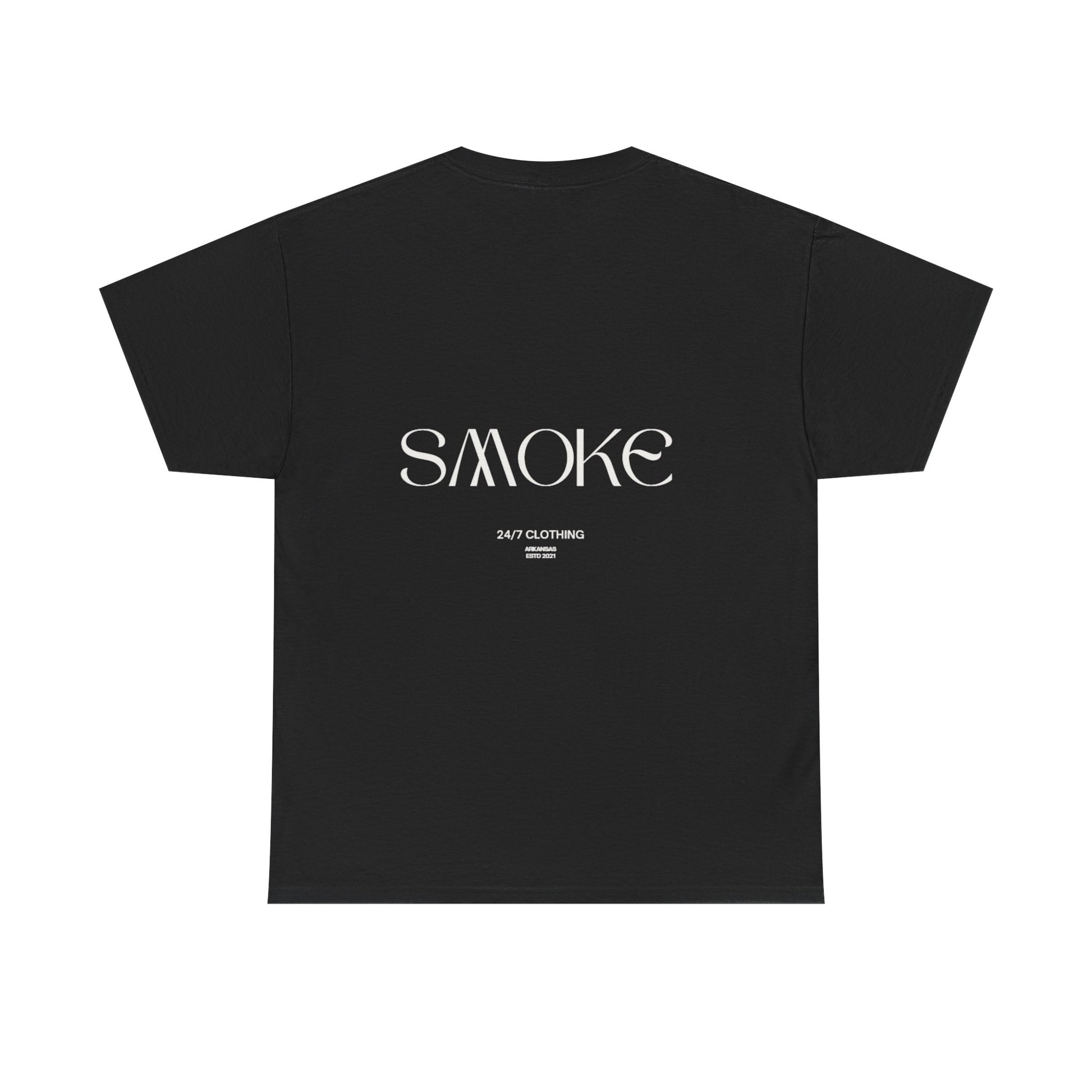 Smoke 24/7 Tee — Minimal Black Graphic T-Shirt with 'SMOKE' Back Logo